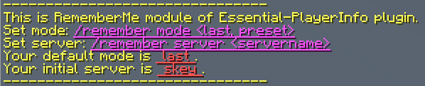 preset, players will connect to a specific server every time when they connect to the proxy. This initial server can be set by another command. If set tolast, players will connect to the server they last exit. - Usage: