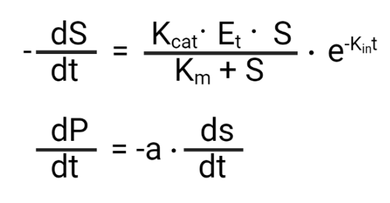 The dS/dt and dP/dt represent the substrate and product over time differential equations, respectively.