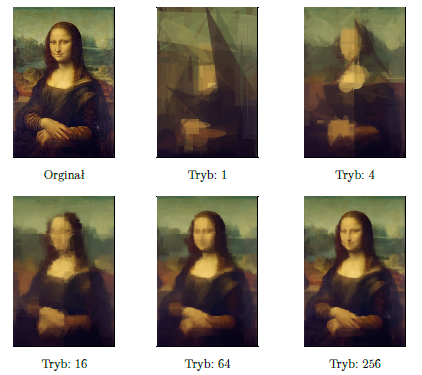 Obraz zadany przez użytkownika na początku może być dowolny pod każdym względem. Końcowy obraz jest wynikiem losowego nakładania na siebie figur geometrycznych tak, by możliwie dobrze przypominał obraz źródłowy. Wszystkie parametry pracy programu, tj. współczynnik mutacji, wielkość populacji, czy ilość iteracji, są możliwe do modyfikacji według uznania użytkownika.