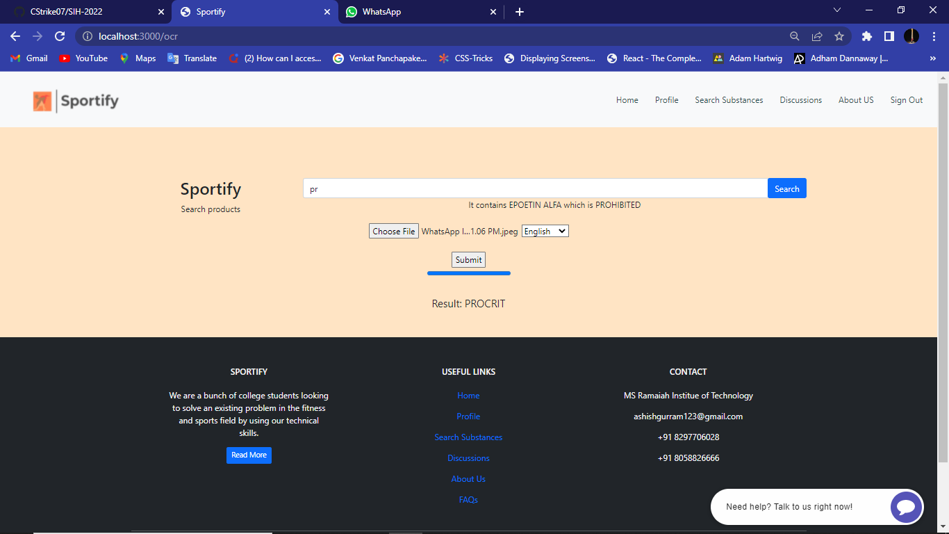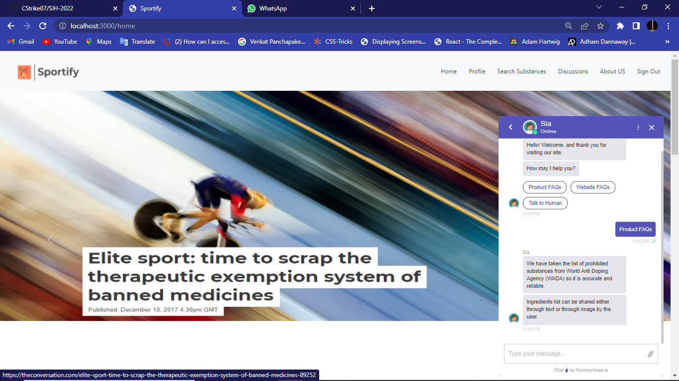 So we have Built a web application for sports community to identify the Prohibited substances and Therapeutic Use Exception