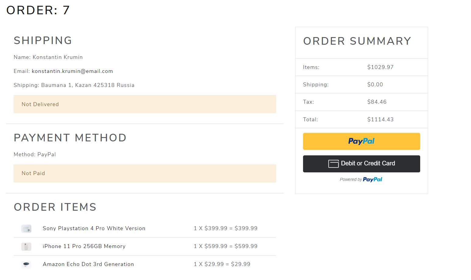 Ecommerce app built with React + Redux on the frontend and Django on the backend. The database used is PostgreSQL. The site is hosted on Heroku, database is on AWS RDS and uploaded images are stored on AWS S3.