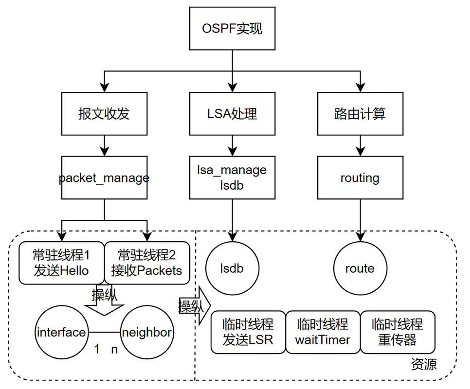 - 《OSPF完全实现》及其源码:比较复杂完整,没有太多精力借鉴。源码分享,提取码:dz89