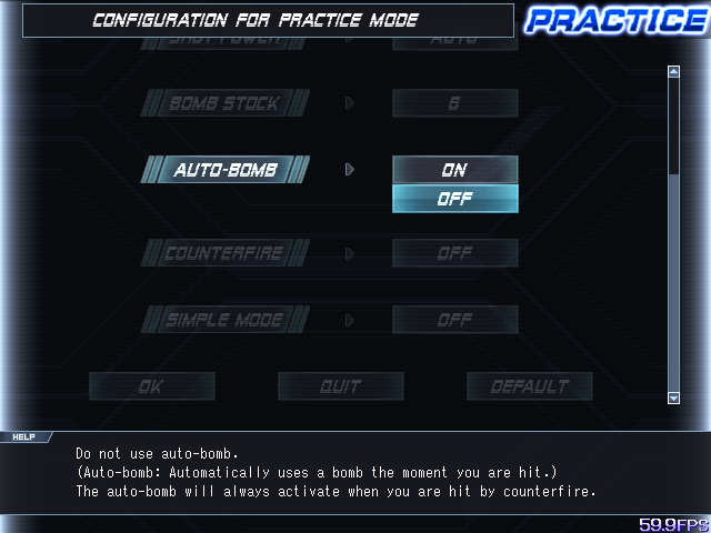 - Practice settings menu