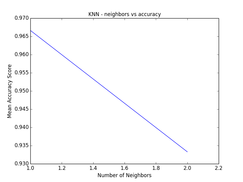 The number of neighbors is cross validated to obtain the accuracies of using different numbers of neighbors. From this, the optimal number of neighbors is chosen, k. The incoming patterns are then classified by the majority of the class labels of the closest k feature vectors from the training set.