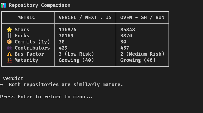 - Repo Maturity Score – Evaluates age, activity, and structure