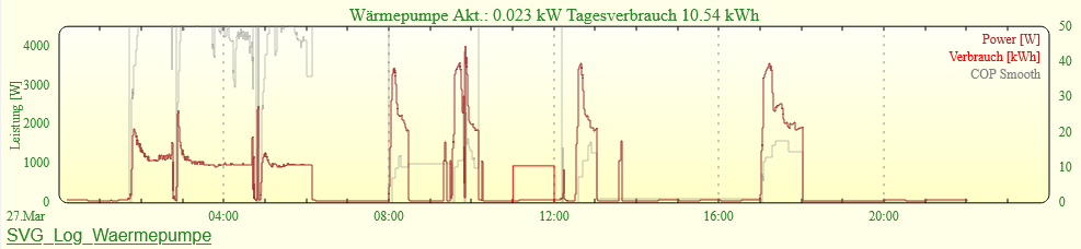 define SVG_Log_Waermepumpe SVG Log_Waermepumpe:SVG_Log_Waermepumpe:CURRENTattr SVG_Log_Waermepumpe label sprintf("Wärmepumpe Akt.: %.3f kW Tagesverbrauch %.2f kWh", $data{currval1}/1000, $data{currval2})attr SVG_Log_Waermepumpe room Plots- oder mit Create SVG plot im Logfile Modul