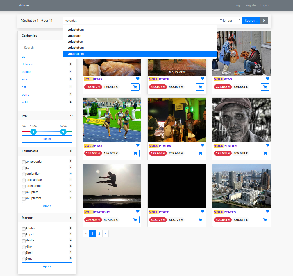 Et du coup pour tester l'application apars les tests fonctionnels implémenté sous notre API symfony, j'ai mis en place environ 10000 articles fictifs ce qu'on appelle des fixtures, afin d'assurer que tout fonctionne correctement de l'application.