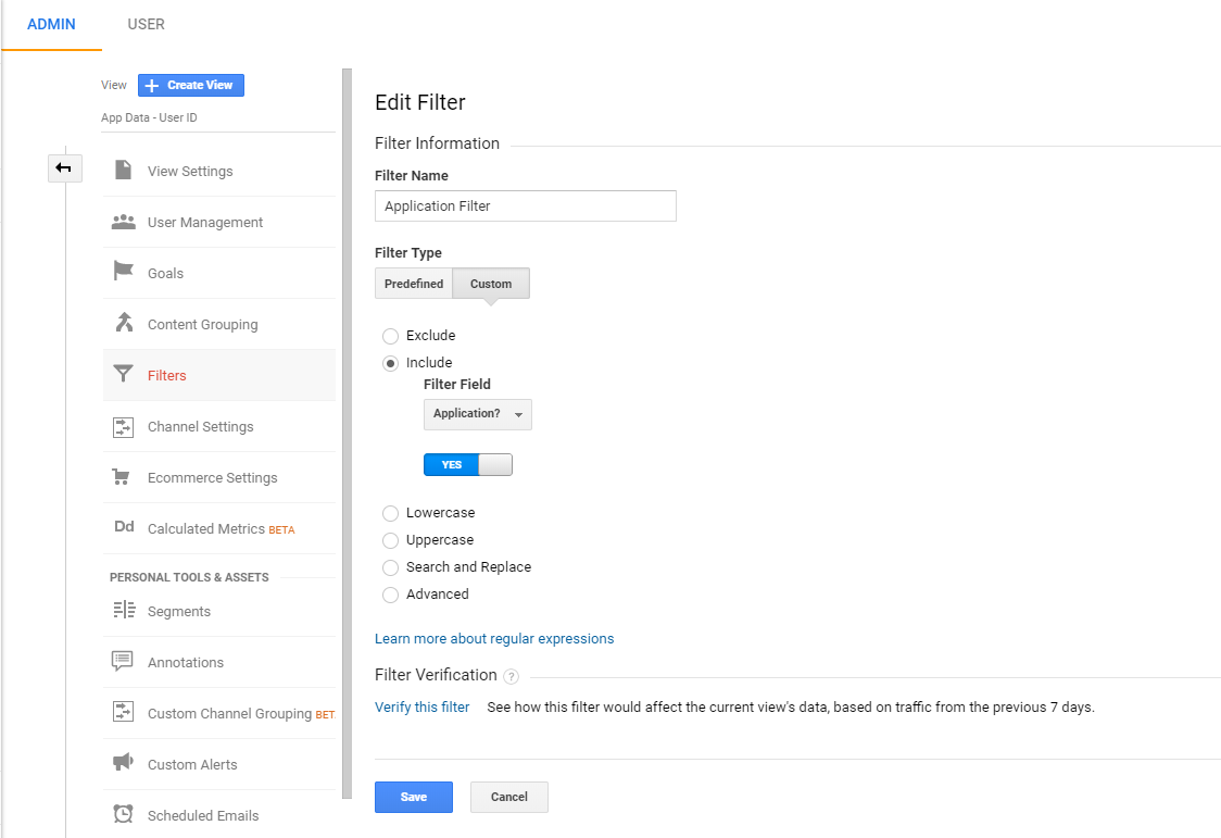 - Filter application tracking data