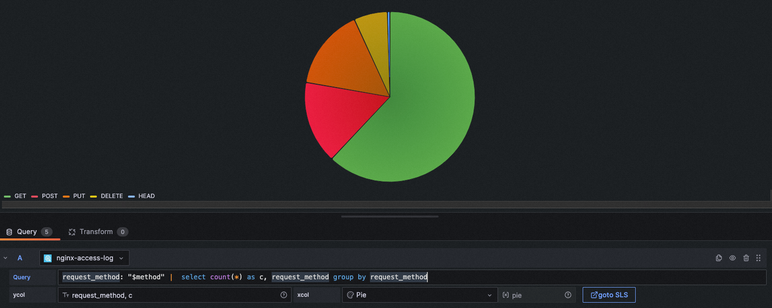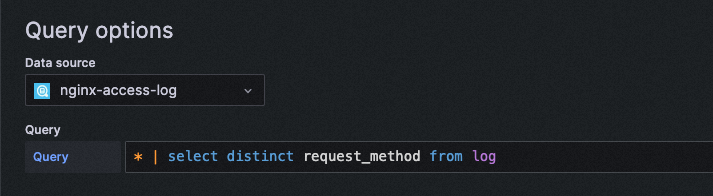 query: request_method: "$method" | select count(*) as c, request_method group by request_method
