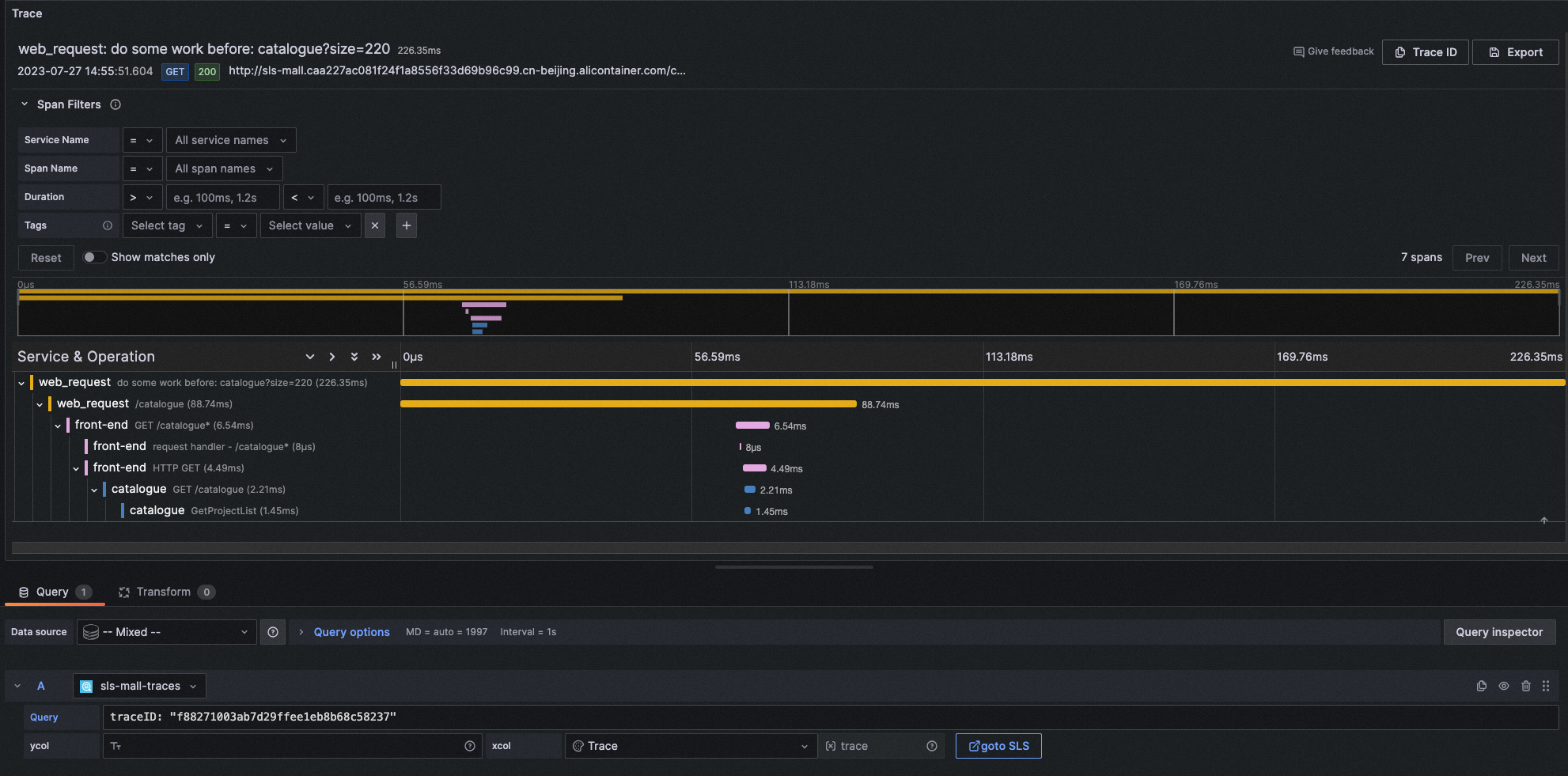query: traceID: "f88271003ab7d29ffee1eb8b68c58237"