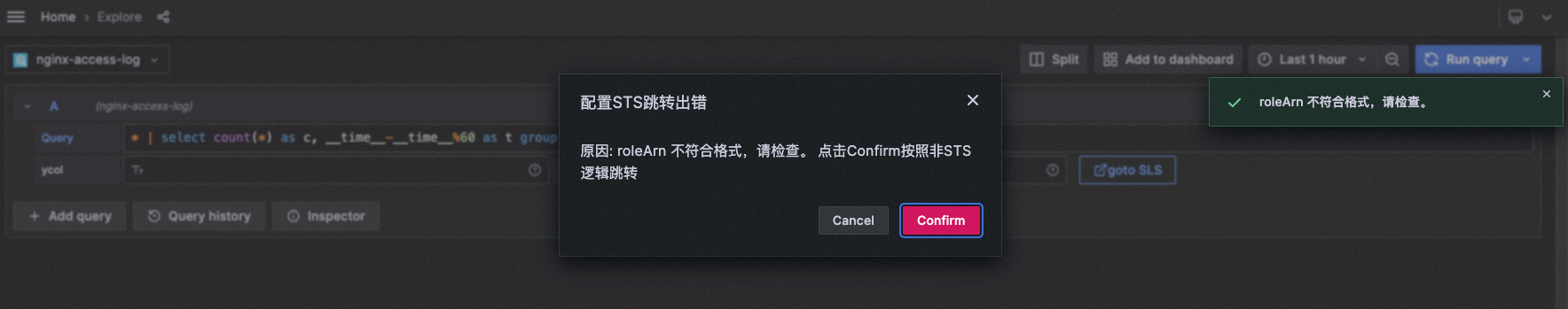 - 再次回到Explore界面,尝试gotoSLS按钮,即可免登STS跳转。