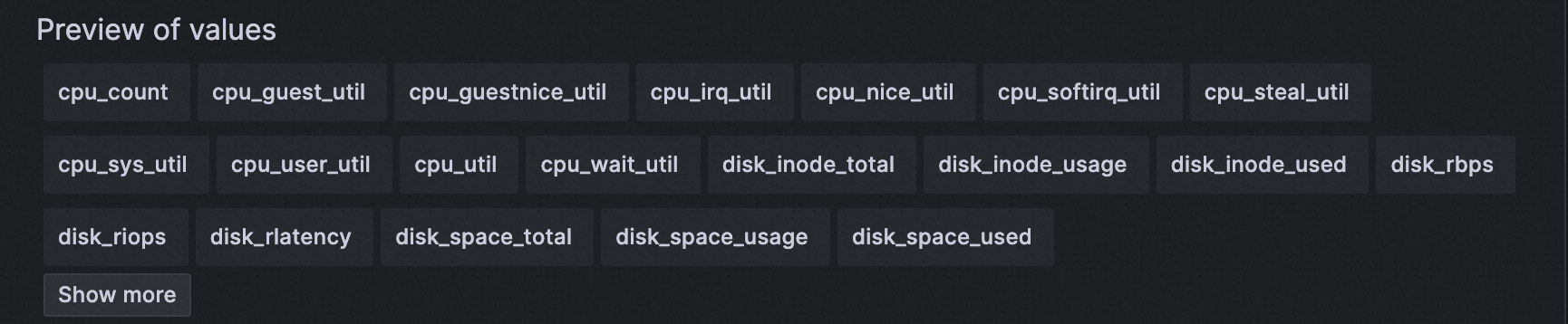 - 在Preview of values中查看结果