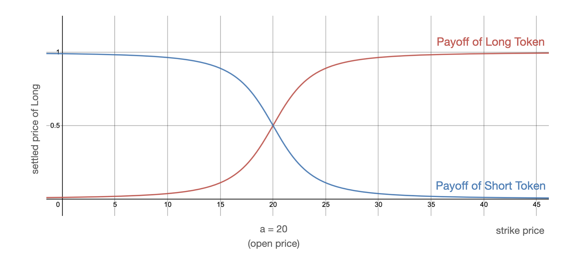 y:Settled Price of Long Token, bPrice = calcDelta()