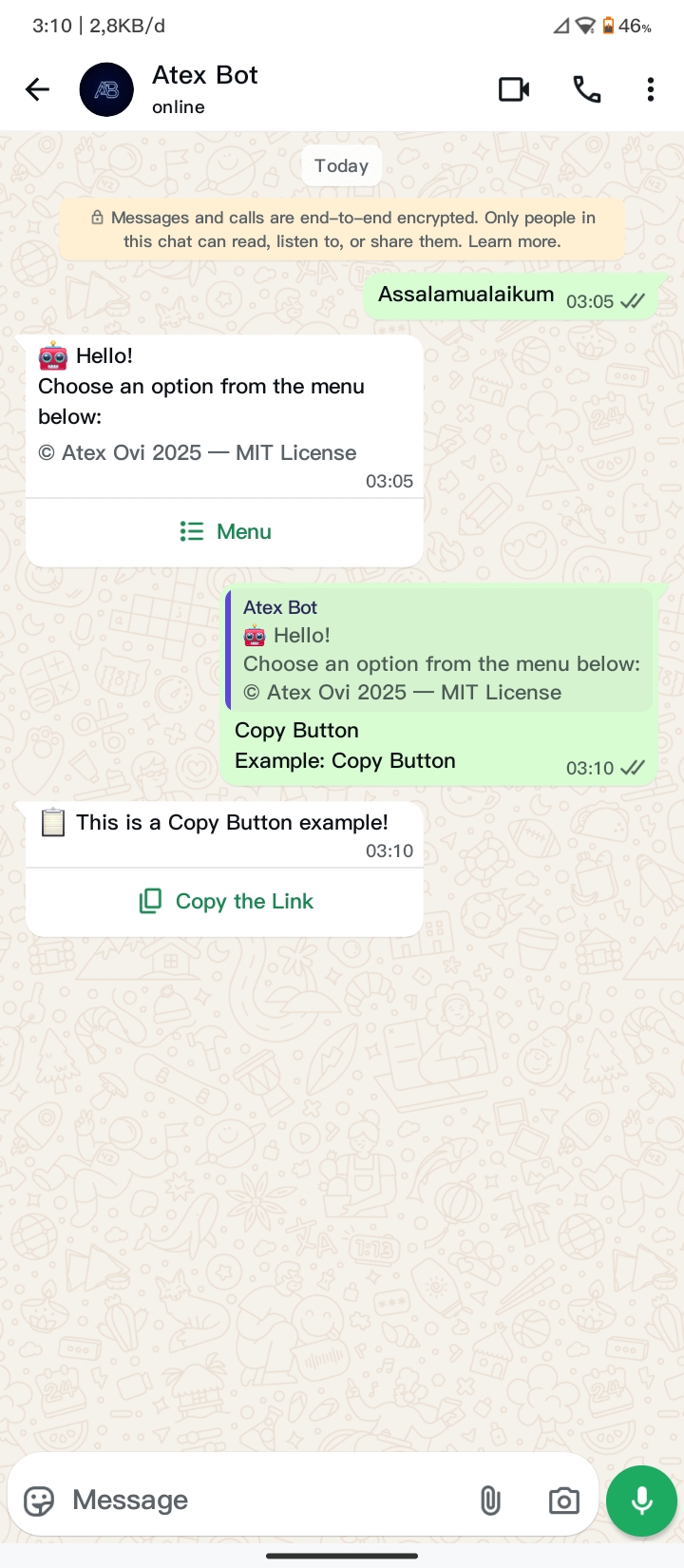 An interactive WhatsApp bot based on atexovi-baileys. This bot displays various types of interactive buttons: