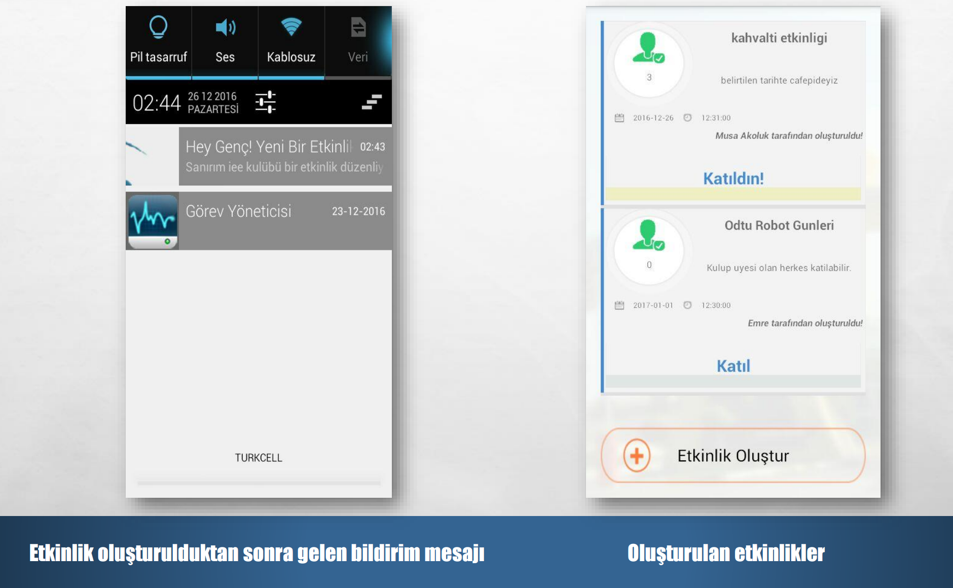 - Etkinliklerden anında bilgi sahibi olma (Firebase Push Notification)