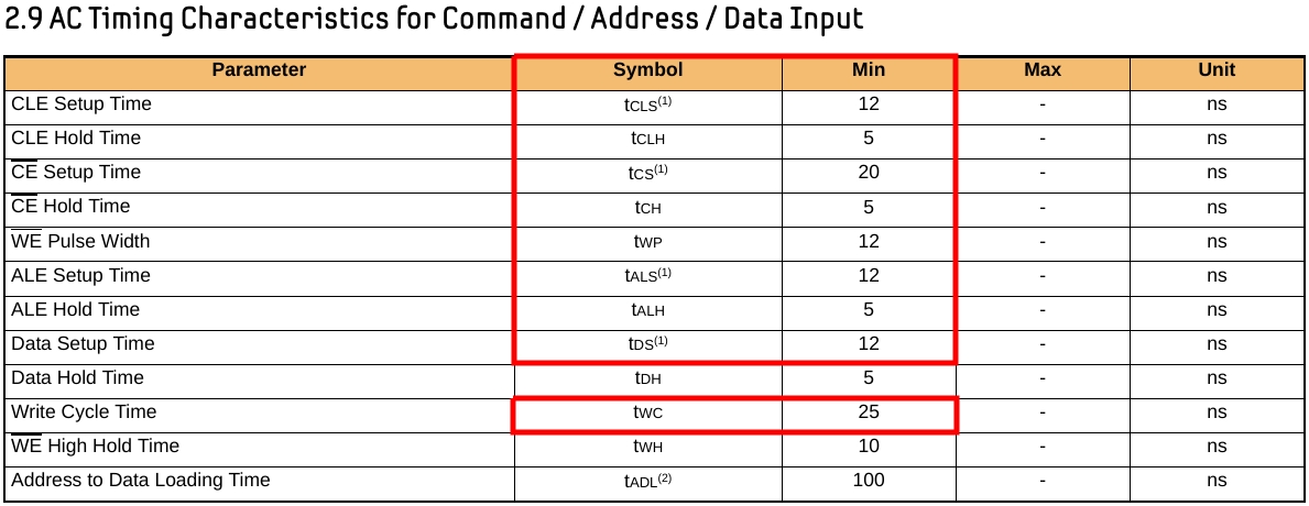 - tCLR - Command Latch Enable (CLE) to Read Enable (RE) delay (ns).