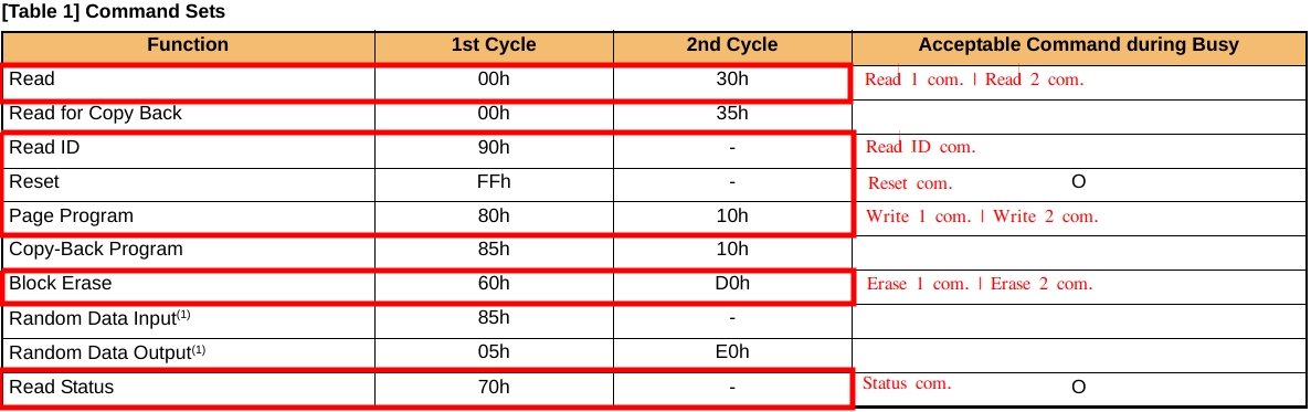- Read 1 com. - command to read page 1st clock cycle (hexadecimal).