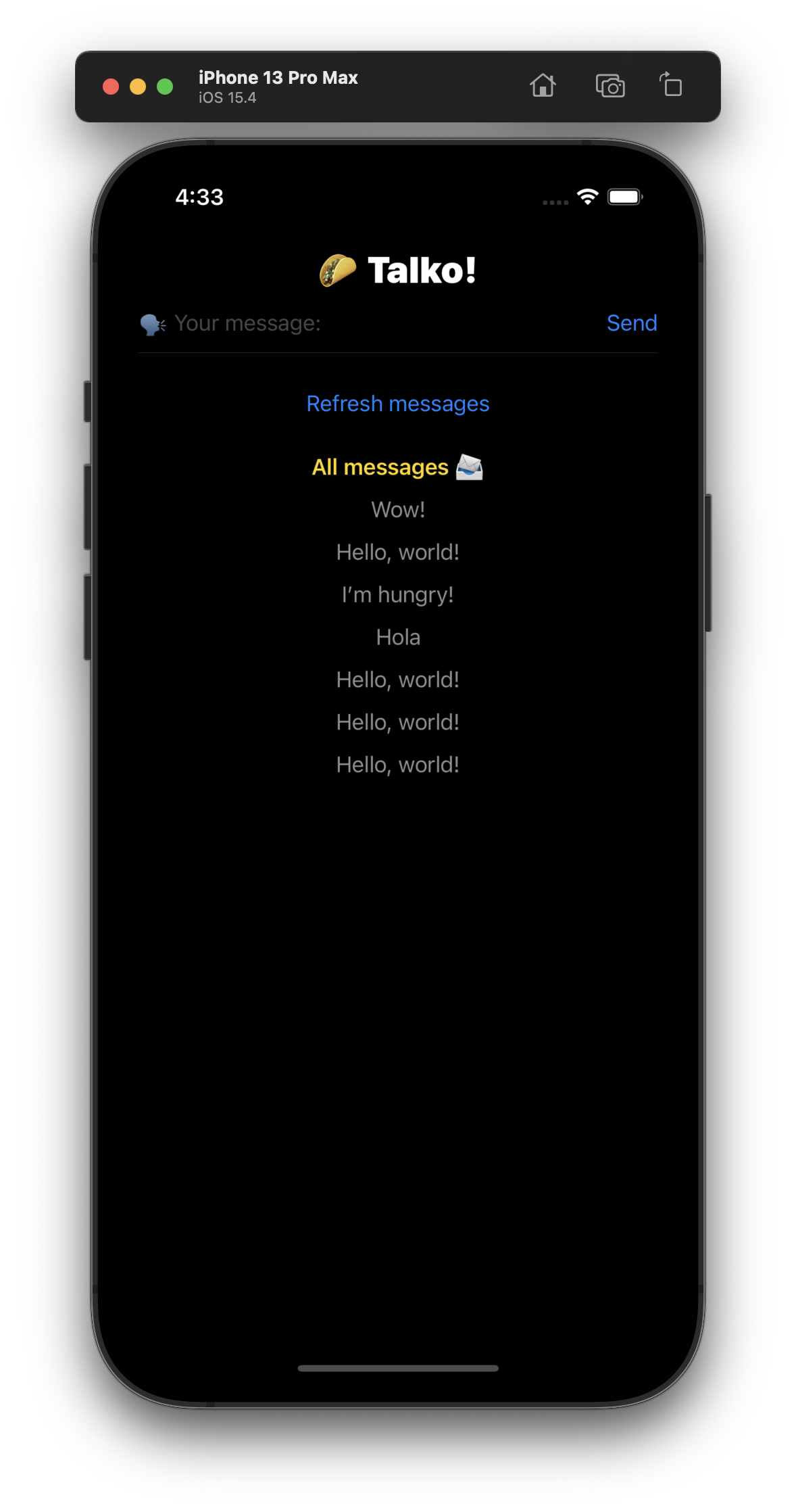 This simple app uses EasyFirebase and SwiftUI to allow the user to send messages to a global chat. The associated tutorial is for coders of any skill level.