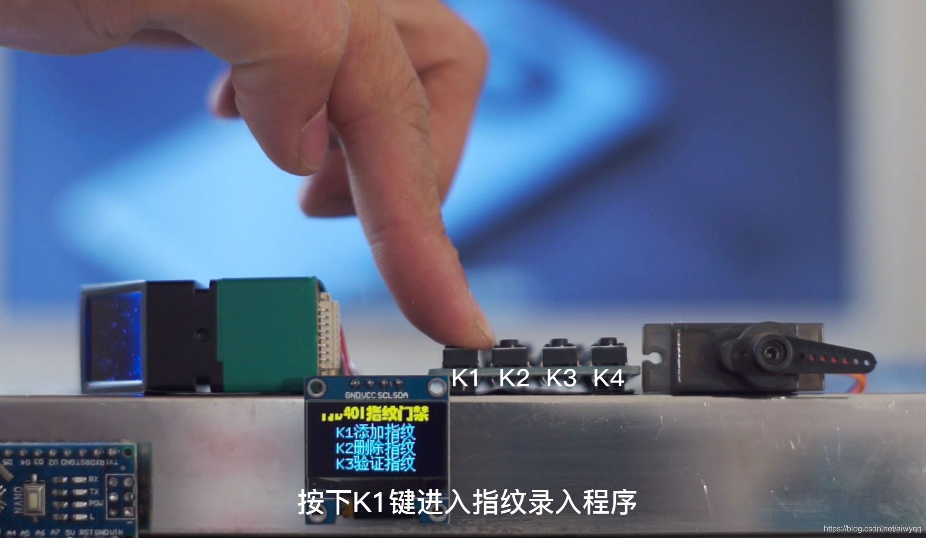 支持按键录入指纹、删除指纹、验证指纹并驱动舵机完成开锁动作