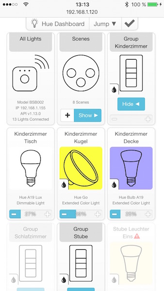 - Light groups can be shown / hidden, preferences are stored on a per-browser basis