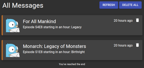 - Receive notifications prior to air of new episodes (currently via Apprise notification)