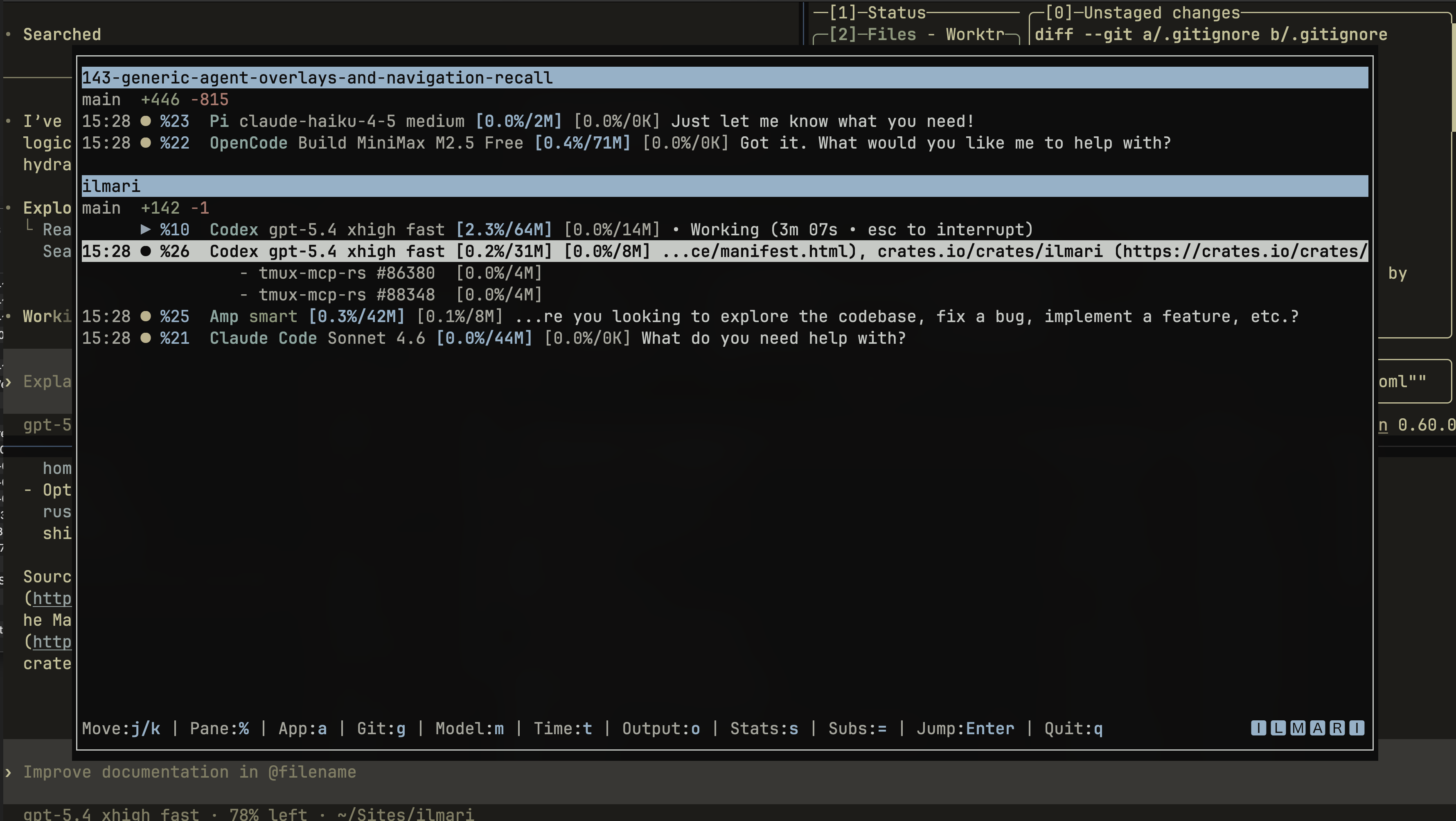 Ilmari exists for the moment when a tmux workspace has multiple agent panes and you need to answer three questions quickly: