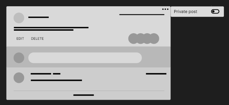 Create a button on each post that will toggle a isPrivate state, this button will be conditionally rendered so only the author of the post may see this(https://reactjs.org/docs/hooks-state.html). State in PostItem Component: