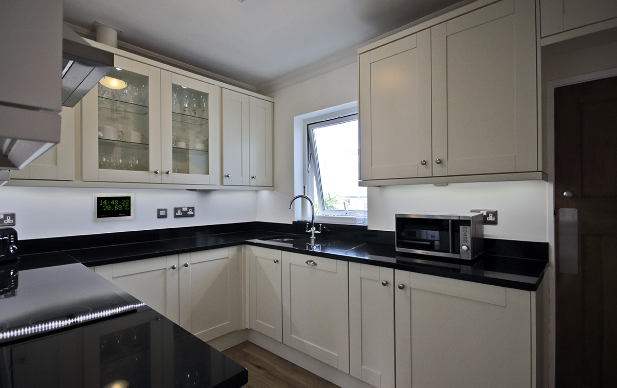 Image below shows the case set back in the plasterboard wall so the display is almost flush with the wall. The control panel is