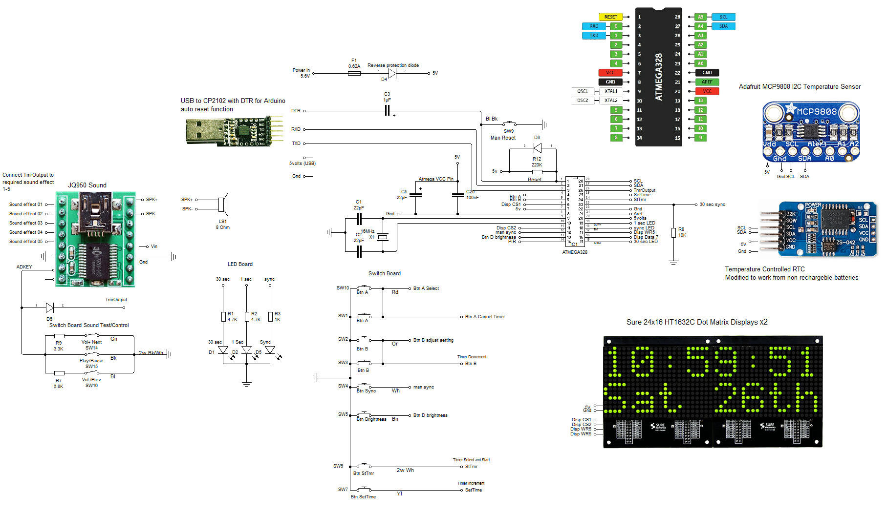 Temperature display added to slide mode via an Adafruit MCP9808 High Accuracy I2C Temperature Sensor