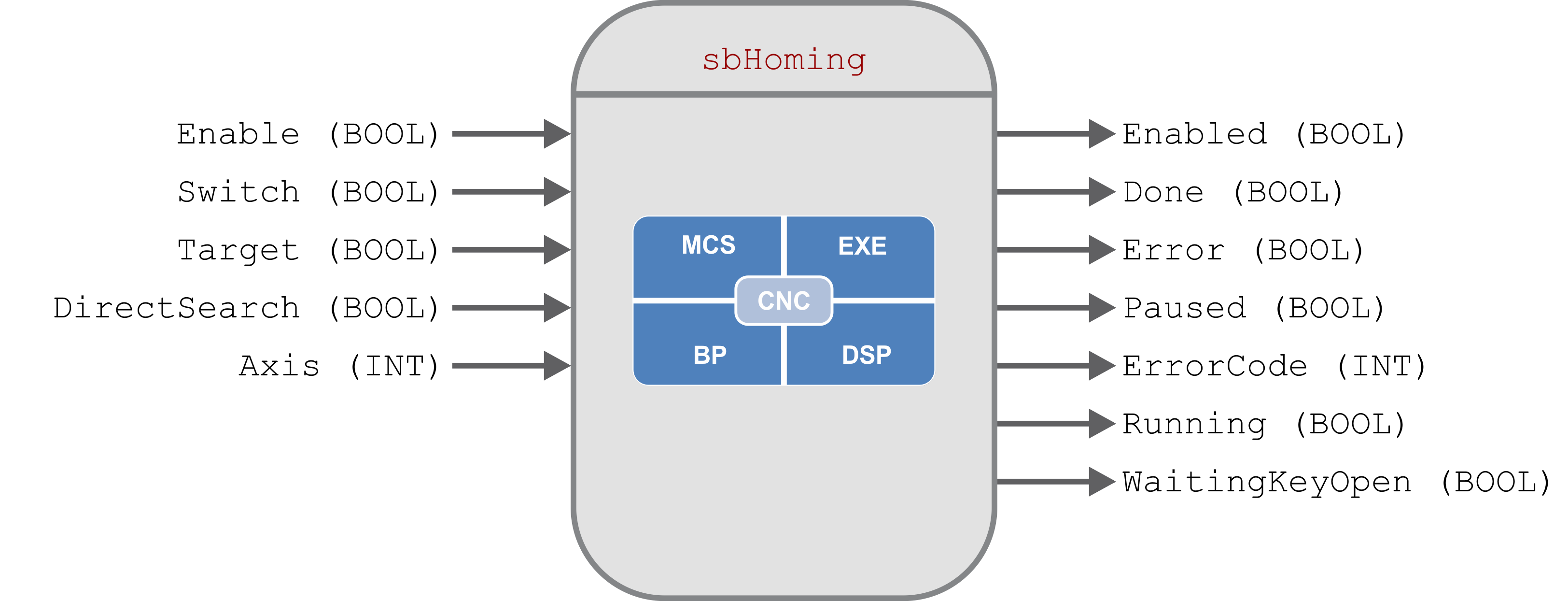sbHoming(Enable, Switch, Target, DirectSearch, Axis)