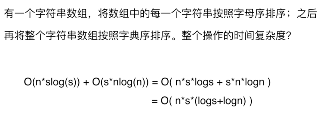 1. n表示数据规模 <img width="636" alt="image" src="https://user-images.githubusercontent.com/32805629/217133916-ad08a2e9-364a-4d40-b01a-df655a13d9ef.png"> 2. 时间复杂度与数据规模曲线 <img width="509" alt="image" src="https://user-images.githubusercontent.com/32805629/217134645-5da729c2-1852-4bbb-88af-08a1e98cd1b0.png"> 3. 学术界和业界对复杂度界定不同,学术界 O(f(n)) 表示算法执行的上界,业界一般取最低上界 (归并可以是 O(nlogn)也可以是 O(n^2)) 4. 字符串数组排序 <img width="649" alt="image" src="https://user-images.githubusercontent.com/32805629/217136291-5da642b5-911c-4c00-b0a1-1f5d9dcb3000.png"> 5. 对数据规模有一个概念 <img width="511" alt="image" src="https://user-images.githubusercontent.com/32805629/217137838-ef8d6987-ef9f-4e28-ac92-b88e93f8103c.png"> 6.