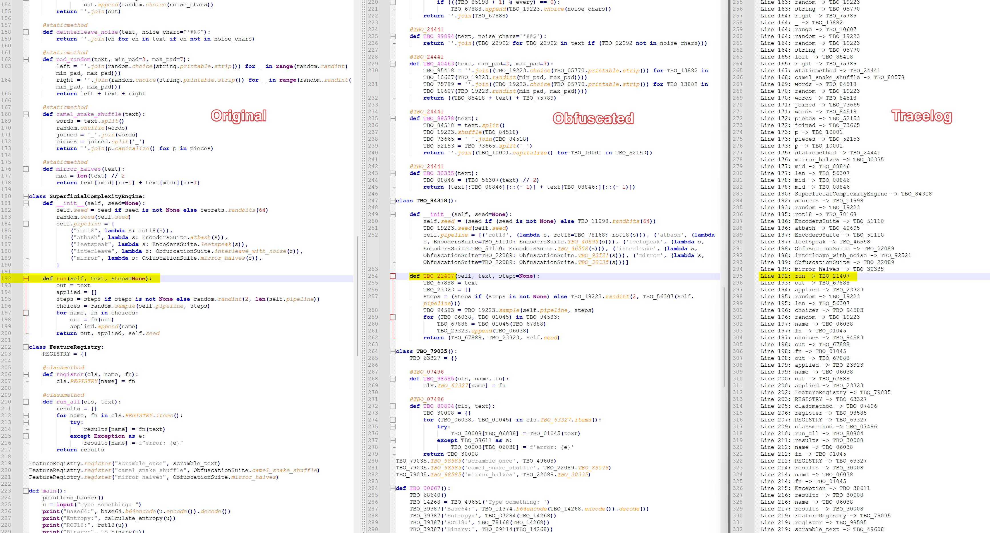 (original ↔ obfuscated map)