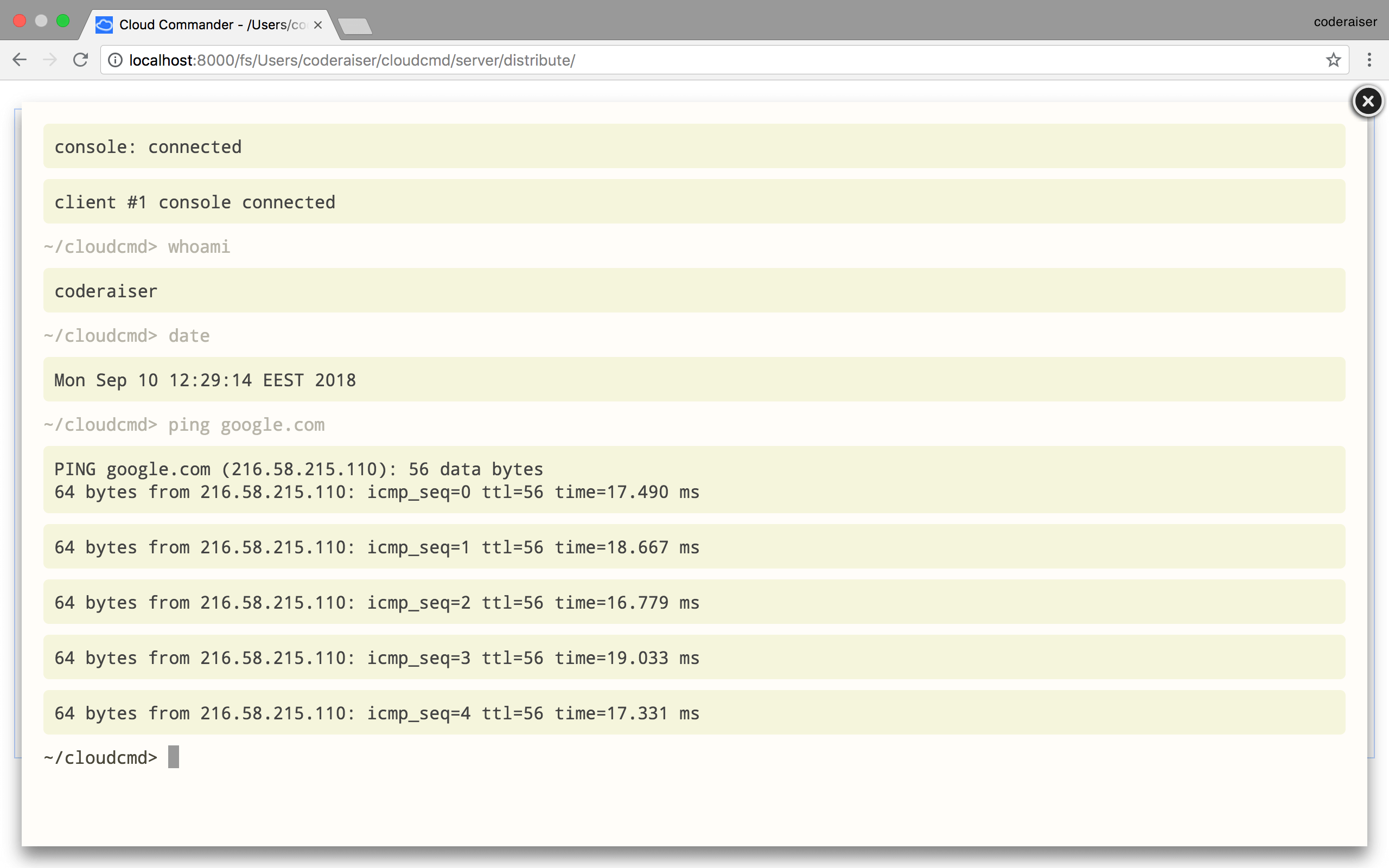 Cloud Commander - двопанельний веб файл менеджер з консоллю та редактором. Допоможе вам керувати сервером та працювати з файлами, папками і програмами в браузері на будь-якому комп'ютері, смартфоні або планшеті.