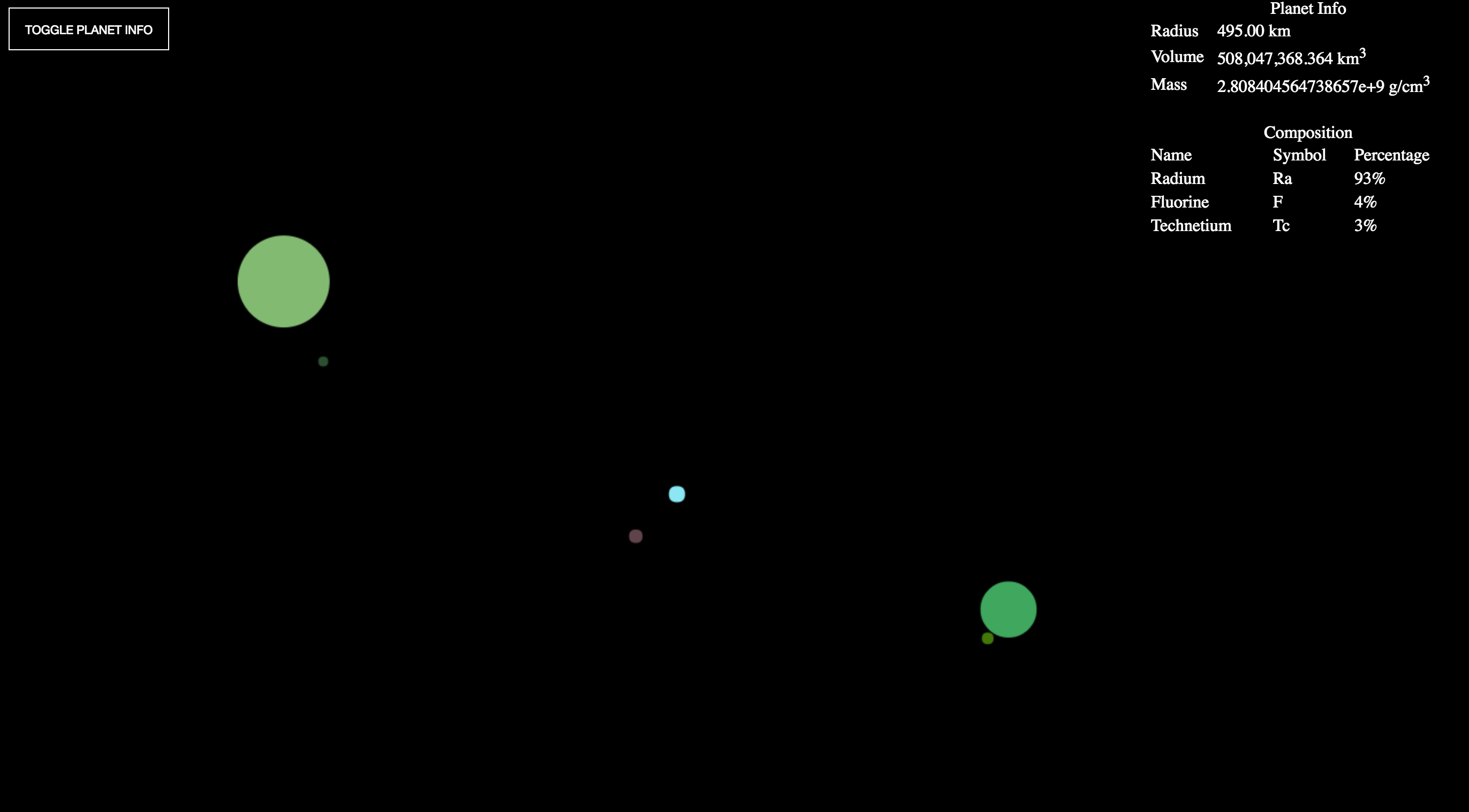 My twist was to accurately generate planets along with all of their properties using elements from the periodic table.