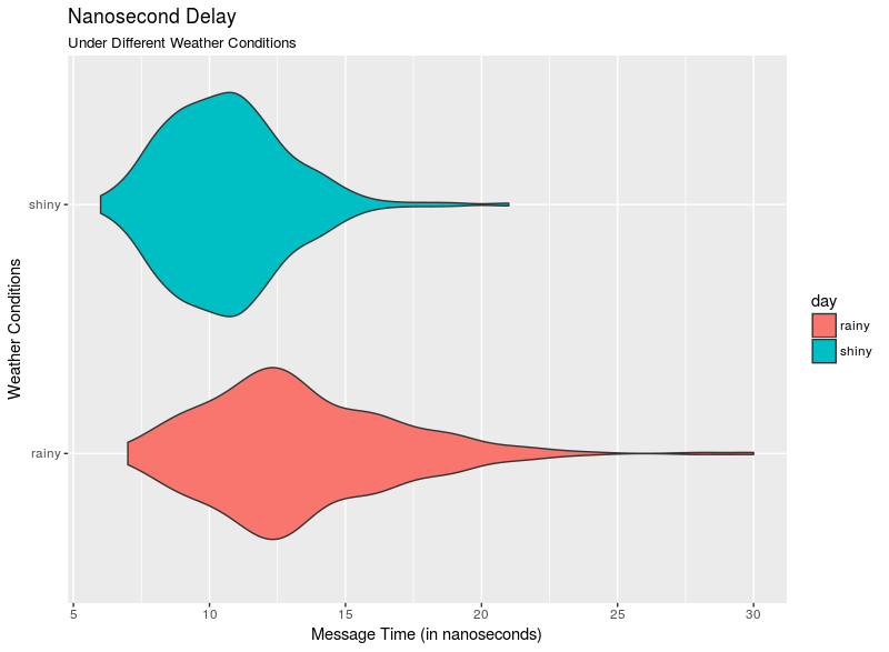 See the included demo script nanosecondDelayExample.R for a (completely simulated and hence made-up) study of network latency measured in nanoseconds resulting in the figure below