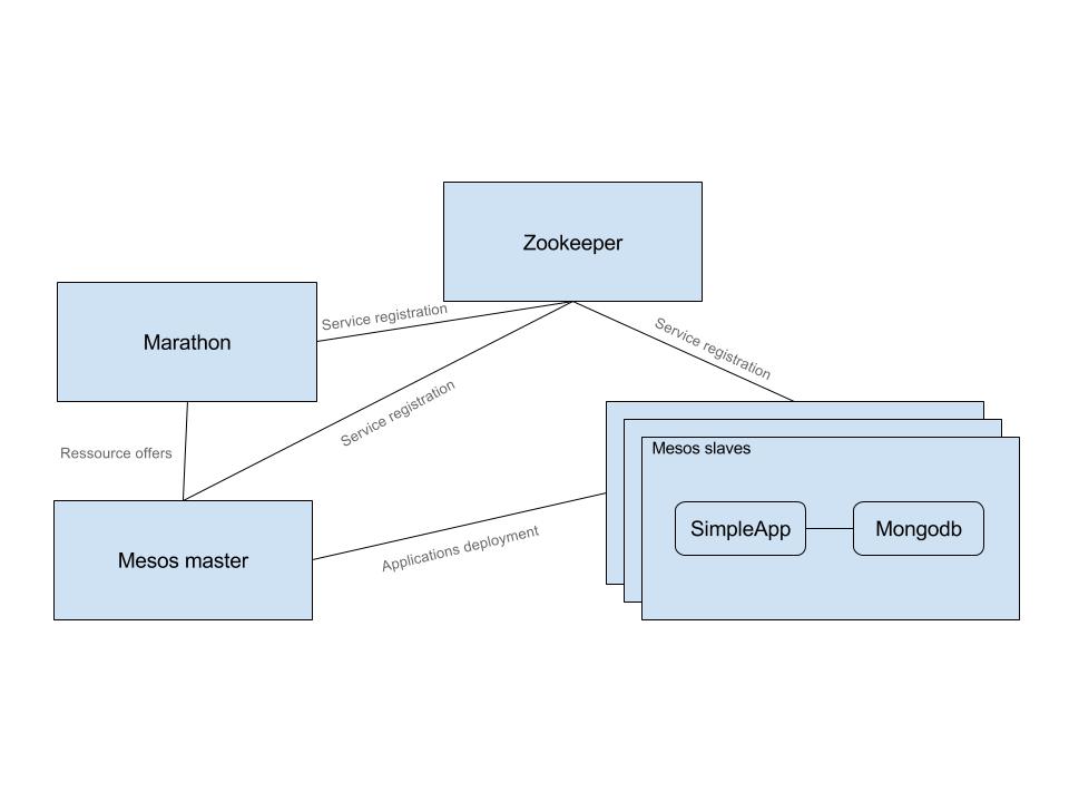 Mesos compose projects aims to launch a pod of containers which are Mesos, Marathon, Zookeeper and Weavescope with Docker Compose for testing purposes.