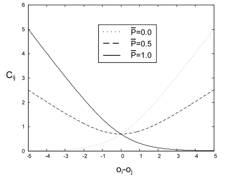 Figure 3: Example values of the cost function for 3 different class labels. For example if the training example is a 1