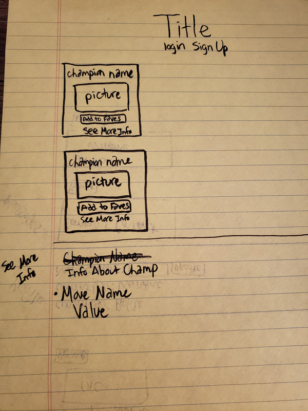 - As a user, I should be able to see a home page with SuperSmash champions, a link to see more info on specific champion and an Add to Favorites button with the title of the website and the option to log in or sign up.