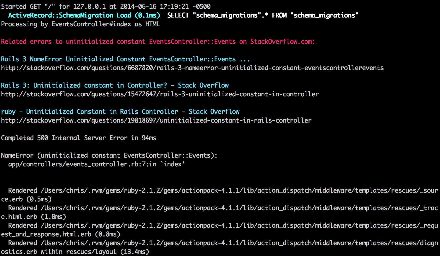 After installing, you should see output like this in your Rails logs. This doesn't interfere with better_errors either!