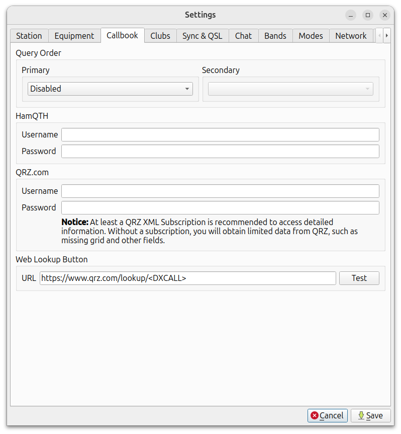 Notes - QRZ.com needs a paid subscriptions to send callbook queries. HamQTH.com needs just a registration. These requirements come from the respective callbook.