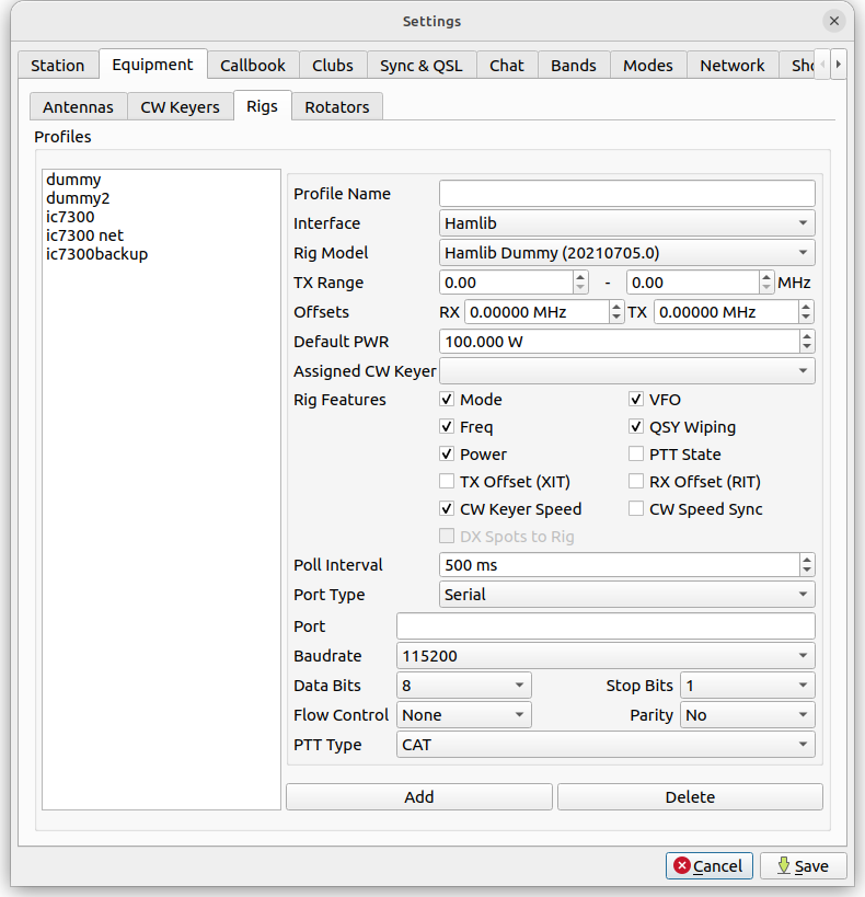 - Port Type - some Rigs support a dual connection type (Serial/Network attached). QLog gives you the option to choose between these two connection types.