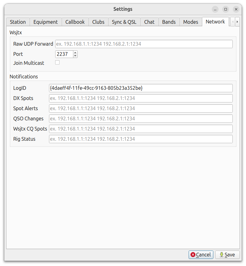 Tab allows to defined a listen Port for WSJTX incoming messages or whether QLog should forward a raw UDP messages received from WSJTX to another IP.
