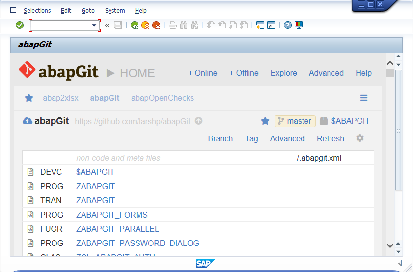 Latest build: zabapgit.abap NB: Some people reported that browsers have issues displaying the file with 75k lines. The easiest solution is to "Save as" the link above and then open it with any editor/viewer (notepad included) and copy from there.