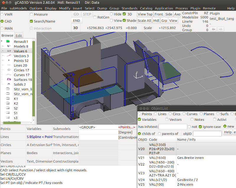 Send bug reports, suggestions for improvements to support@gcad3d.org