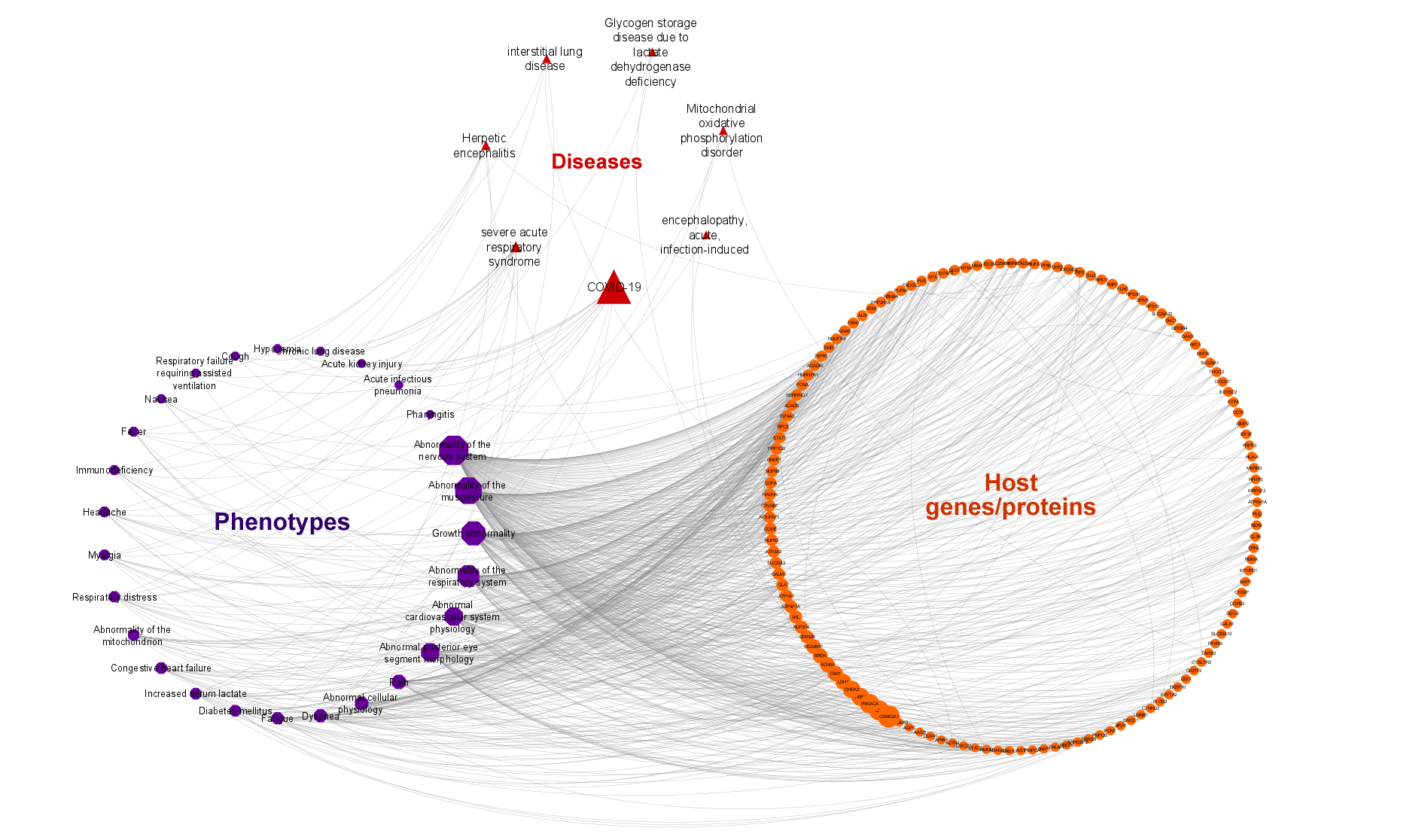 - HPO also has a curated list of SARS related phenotype terms. These terms were also added into the network and mapped to "COVID-19" and "Severe acute respiratory syndrome" disease nodes.