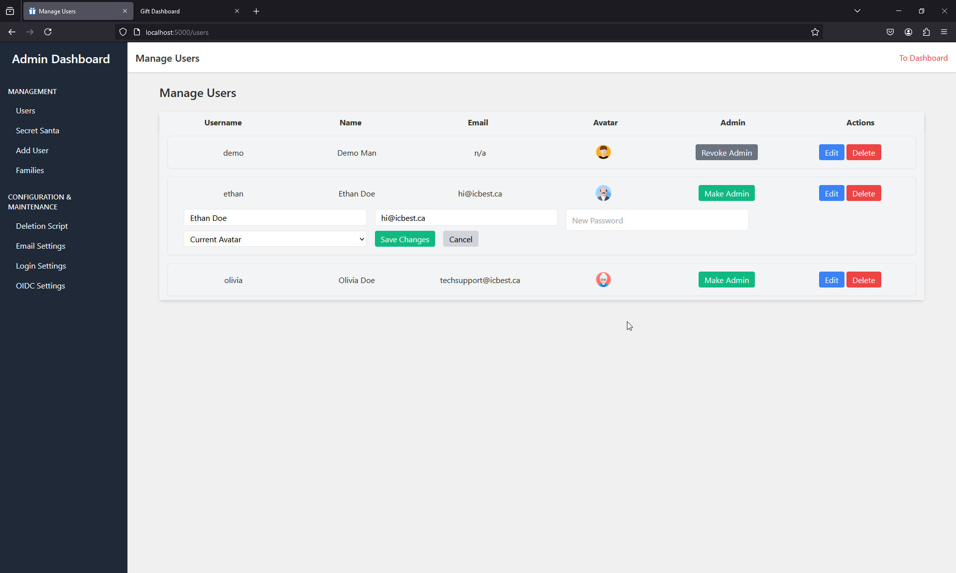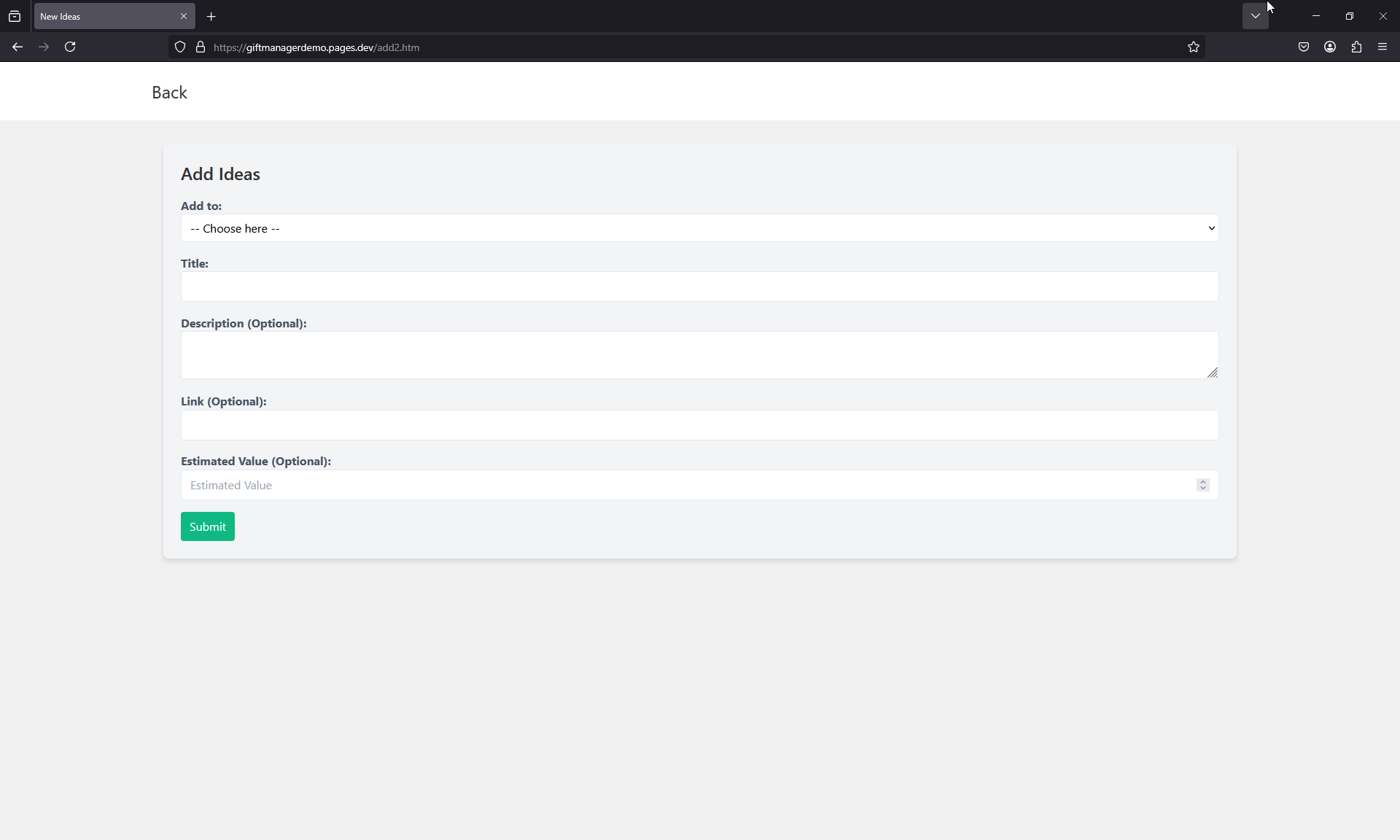 You can check out the live demo here: Giftmanager Demo