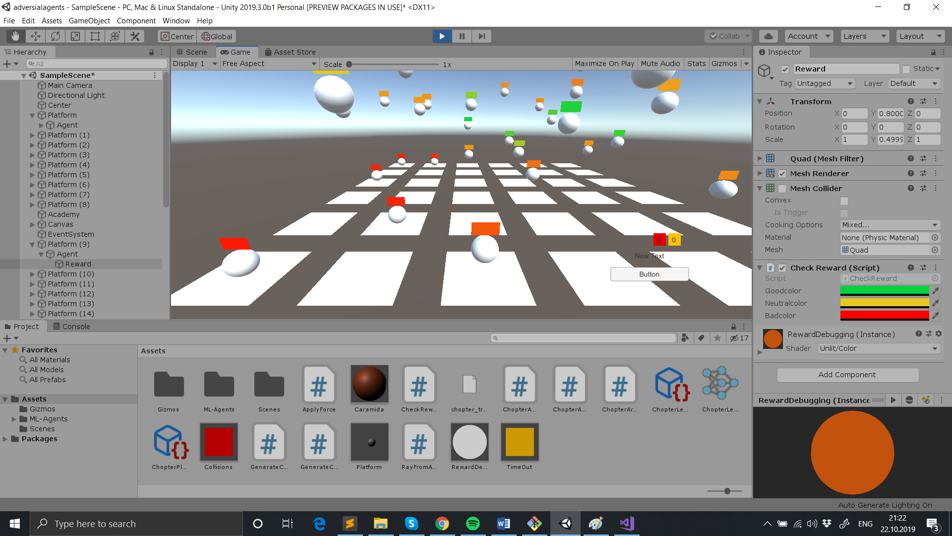 The main aim for this work was for the most part just a learning experience, to understand the intrecacies of how reinforcement learning works in simulated environments and what is the state of the art in this particular area of research. Being a Unity enthusiast, this was normally the place to start.