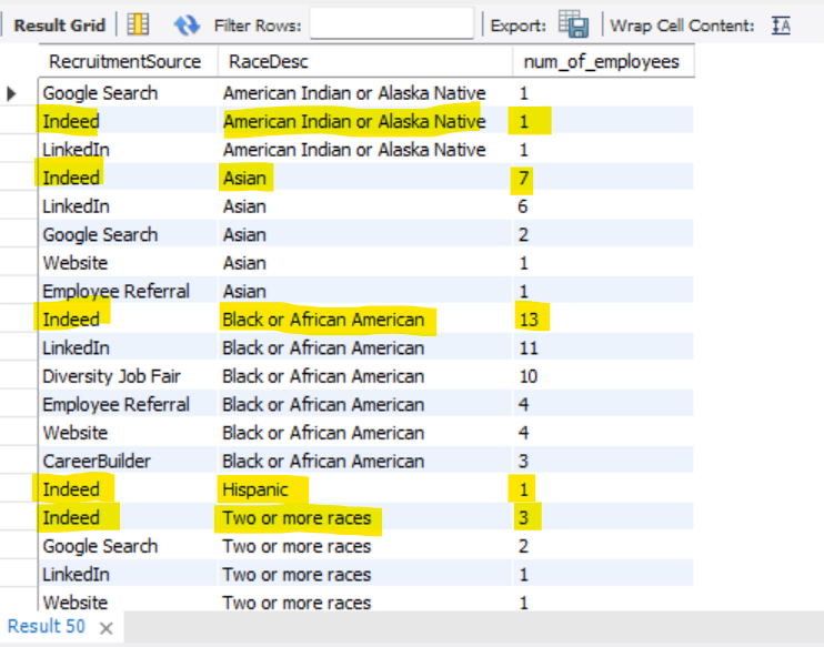 - It appears that Indeed brought the most diverse and performing people to this company. It is suggested that the company should continue using this platform if it wants to ensure workplace diversity.