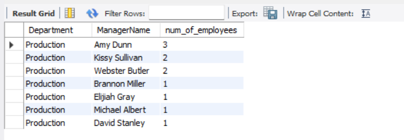 - Find out the managers’ names and the number of employees within his/ her team who resigned due to unhappiness, but fully met or exceeds their performance assessment criteria.