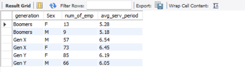 - Most of the current employees are Generation Y (102), followed by Generation X (87), and finally Baby Boomers (10). Generally, the average service period of Generation X is longer than that of Generation Y (also known as millennials).
